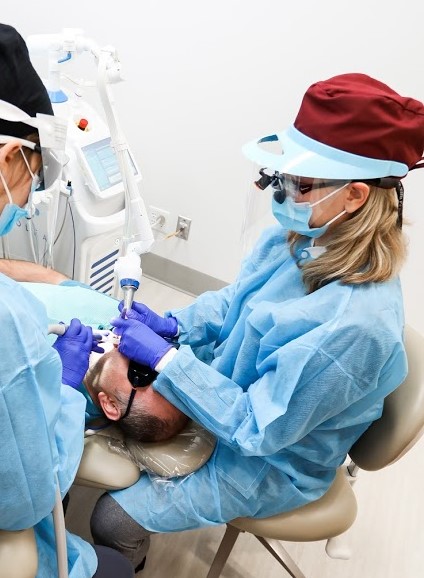 Dr. Guk is certified in hard and soft tissue laser technology. The best in the class Solea® laser is used extensively at the office. Dr. Guk performs numerous procedures using this laser, such as cavity preparations without local anesthesia, frenectomies for tongue tie cases, surgical removal of bone, surgical extractions, tightening of tissues to eliminate snoring, oral ulcer treatment, gum depigmentation, and much more.